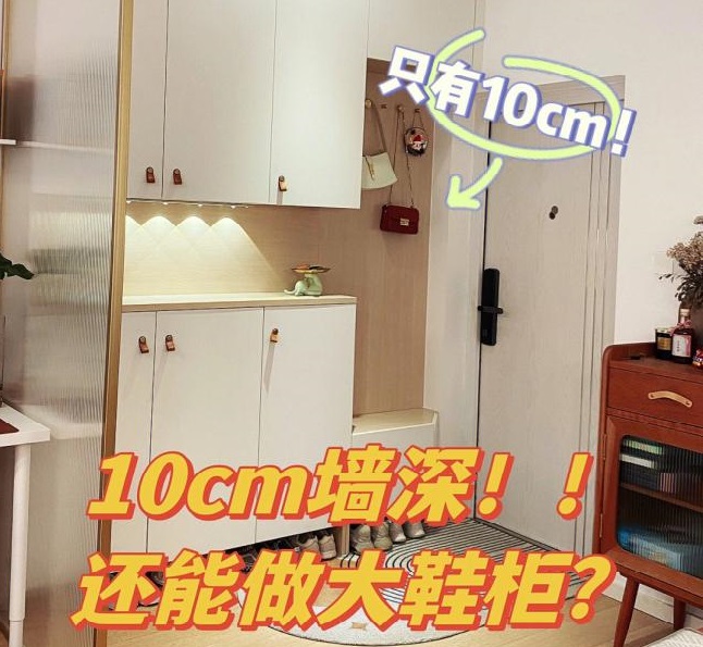 快來抄作業(yè)!10cm墻深怎么做出超大容量鞋柜?由于開發(fā)商考慮不到位,入戶大門側(cè)面的玄關(guān)墻深度只有10cm??板材十大品牌設(shè)計(jì)小能手上線啦,進(jìn)門做換鞋凳+轉(zhuǎn)角的設(shè)計(jì)方式,愣是給凹出了多功能大容量的玄關(guān)柜,讓鞋子整齊有序,還能兼顧感應(yīng)燈、掛包包、收納、...