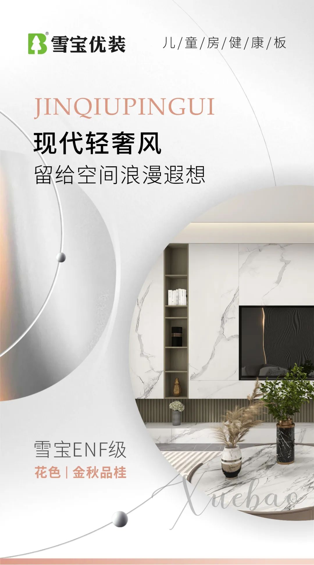 - 雪寶ENF級(jí)板材“金秋品桂”,現(xiàn)代輕奢風(fēng),留給空間浪漫遐想