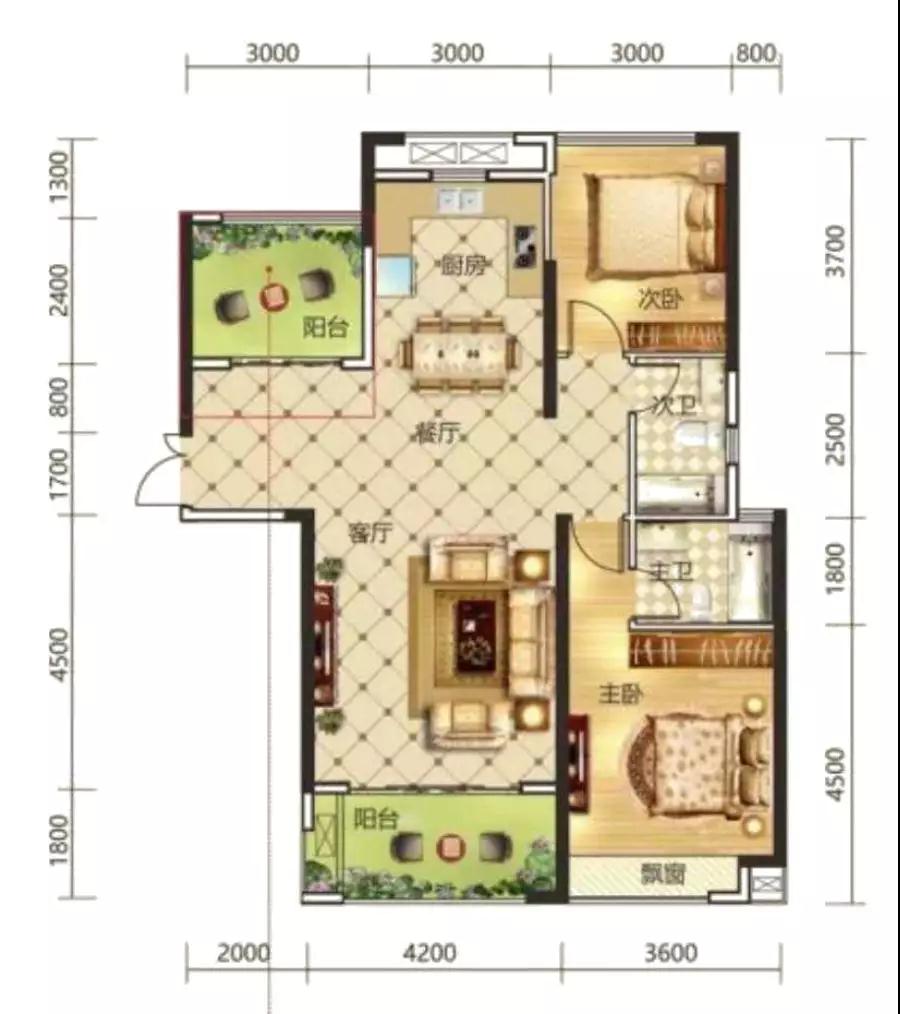 功 能 性:廚房面積小且不大實(shí)用的開放式設(shè)計(jì);餐廳面積非常小,主臥同樣面積有限;次臥進(jìn)深較長(zhǎng)但寬度不夠;