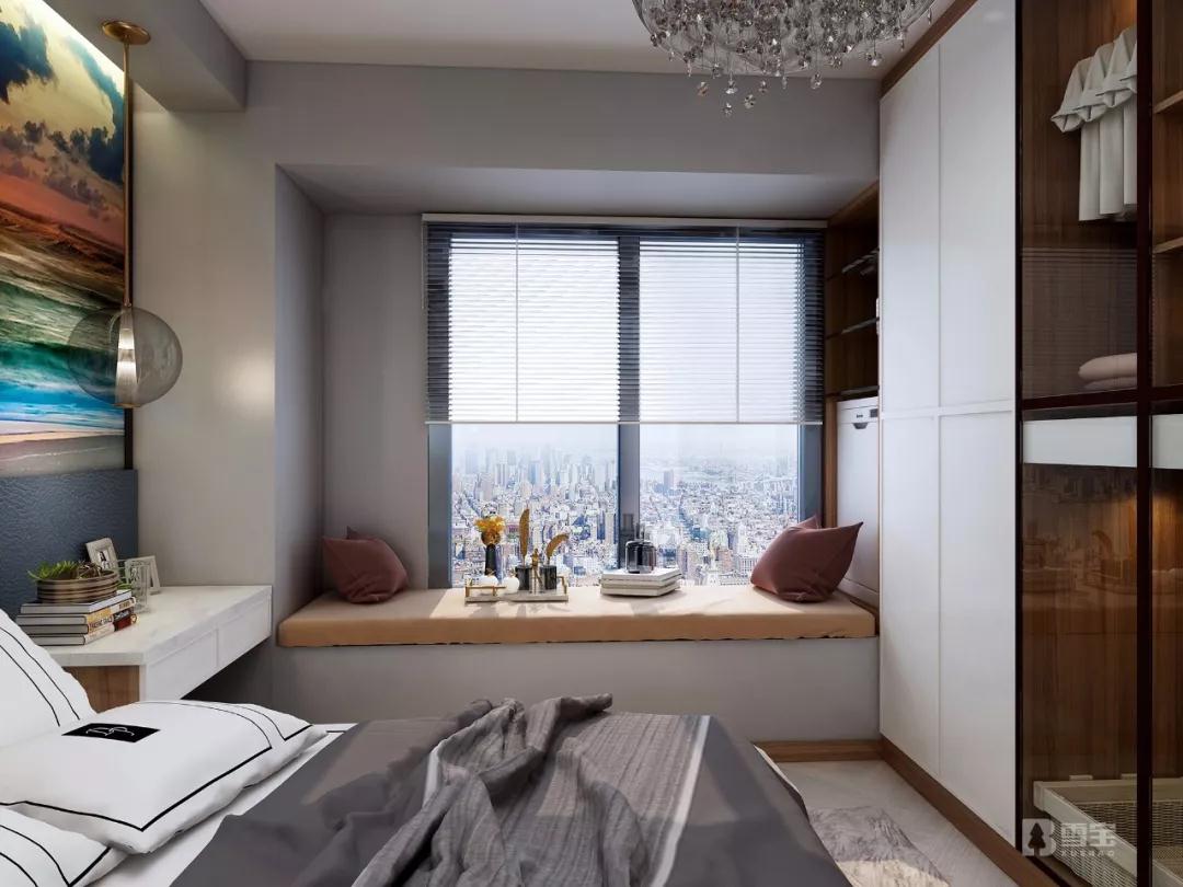 主臥設(shè)計(jì)無(wú)疑也是盡可能擴(kuò)容收納和加強(qiáng)功能性,同時(shí)兼顧了女主人的喜好,大衣柜、床頭柜、簡(jiǎn)易書桌柜、飄窗柜在整個(gè)空間各顯其能。衛(wèi)生間采用智控鋼化玻璃打造隔斷,不用之際,主臥空間視覺開闊明朗,使用之時(shí),智控裝置為生活隱私保駕護(hù)航,實(shí)現(xiàn)虛實(shí)自由掌控。