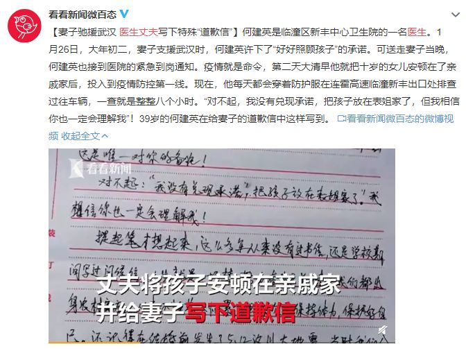 她瞞著家人馳援武漢,丈夫直到看見別人發(fā)的照片,才知道她已經(jīng)出發(fā)。兩人在電話里大吵一架,冷靜之后,同為軍人的丈夫給彭渝發(fā)了一條微信