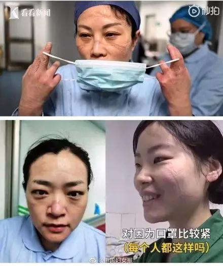 長時間佩戴口罩,醫(yī)生臉上滿是印記