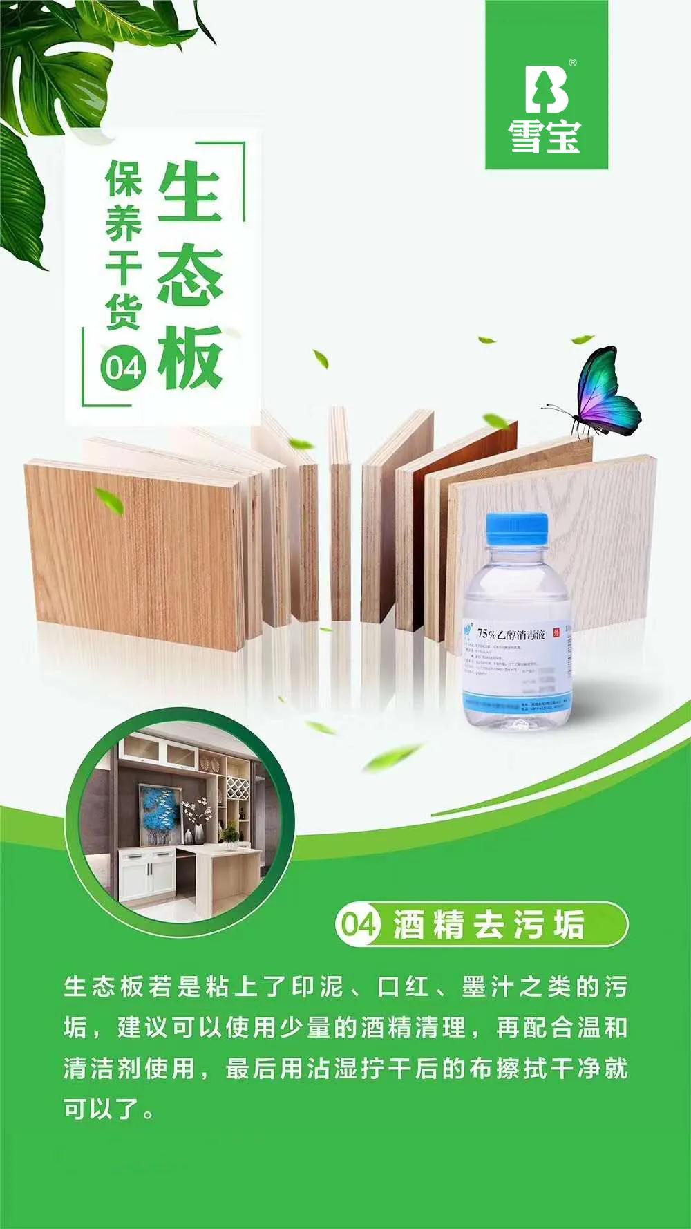 如今,生態(tài)板家具已走進千家萬戶,正是因為生態(tài)板要比其它類別的板材在使用性能方面要穩(wěn)定的多,握釘力強,平整度高。而且環(huán)保等級高,可以達到E0級,甚至遠優(yōu)于國家E0級環(huán)保等級標(biāo)準(zhǔn),譬如雪寶生態(tài)板系列產(chǎn)品。在日常生活中,家中難免有熊孩子亂涂亂畫,或是不小心弄臟了等常見污染物,那么用生態(tài)板做的家具該如何正確保養(yǎng)呢?
