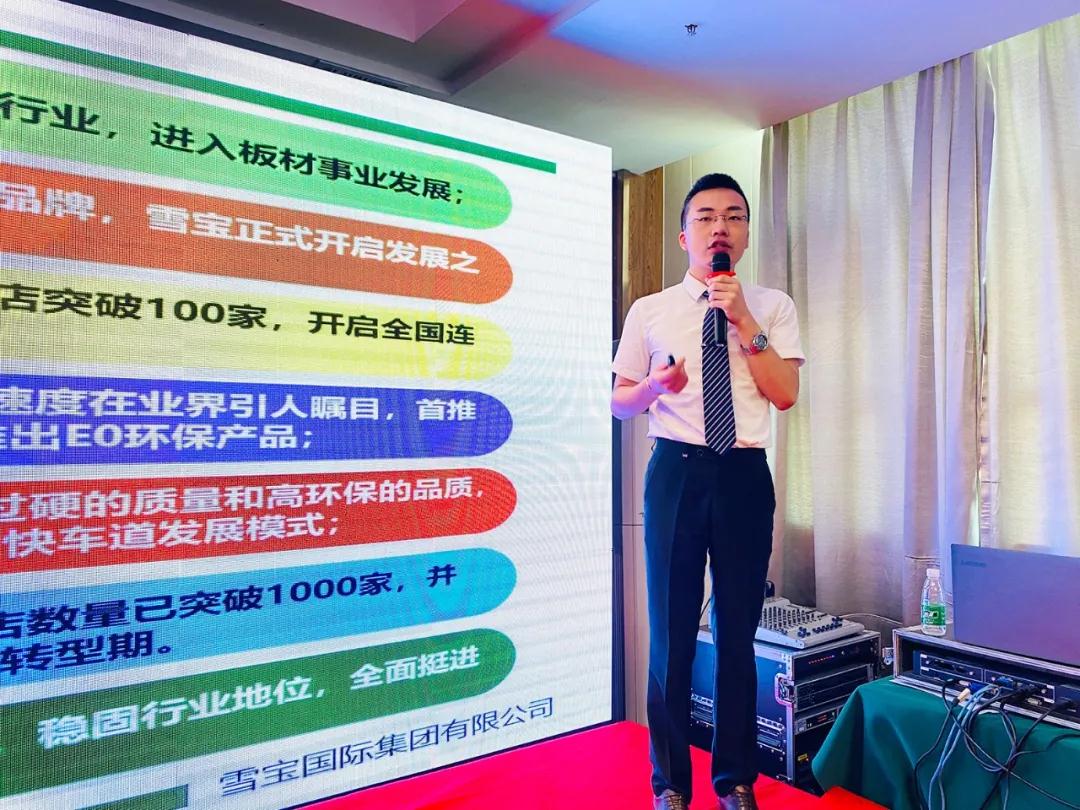 雪寶集團華北營銷副總陳家義先生現(xiàn)場細致講解雪寶家具板產(chǎn)品介紹及核心賣點以及招商加盟、訂貨優(yōu)惠政策宣導;