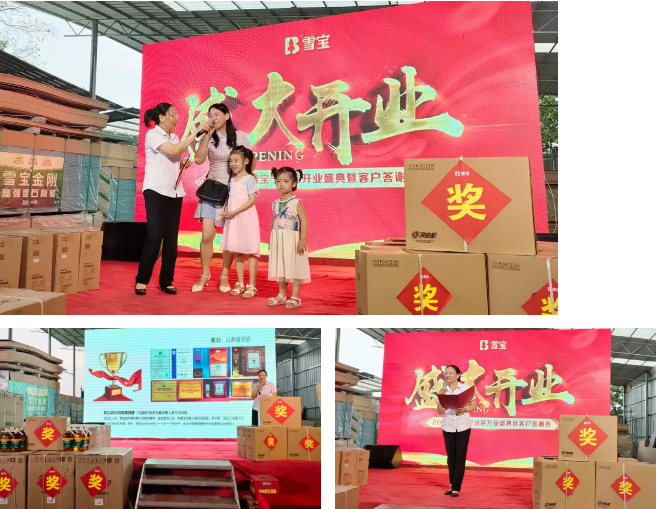 因酒店接納容量不足,本次答謝會(huì)最終選在雪寶寧遠(yuǎn)店羅總自家倉(cāng)庫(kù)舉辦,讓每一位來(lái)賓朋友近距離親身體驗(yàn)雪寶系列產(chǎn)品的同時(shí),也充分顯現(xiàn)雪寶品牌在寧遠(yuǎn)地區(qū)的強(qiáng)大實(shí)力。