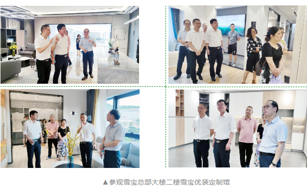通過(guò)實(shí)地考察和互動(dòng)交流,張司令員一行詳細(xì)了解了雪寶集團(tuán)產(chǎn)業(yè)、品牌發(fā)展歷程、園區(qū)建設(shè)、全屋定制領(lǐng)域等方面的專業(yè)知識(shí),對(duì)雪寶企業(yè)的快速穩(wěn)健發(fā)展給予了大力的肯定。張司令員非常關(guān)心雪寶,同時(shí)通過(guò)參觀雪寶優(yōu)裝定制館、生產(chǎn)車間,來(lái)賓們對(duì)雪寶產(chǎn)品體系及未來(lái)發(fā)展方向有了更大的期許。