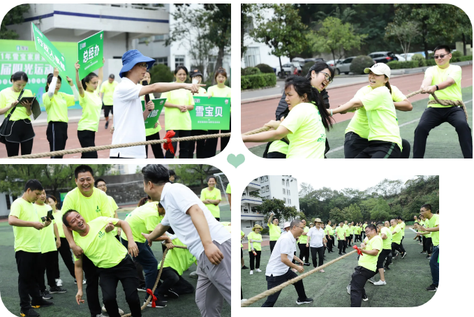 拔河項目比拼,每屆運動會必賽項目,打亂所有部門人員組成比賽隊伍,來一場純力量比拼。