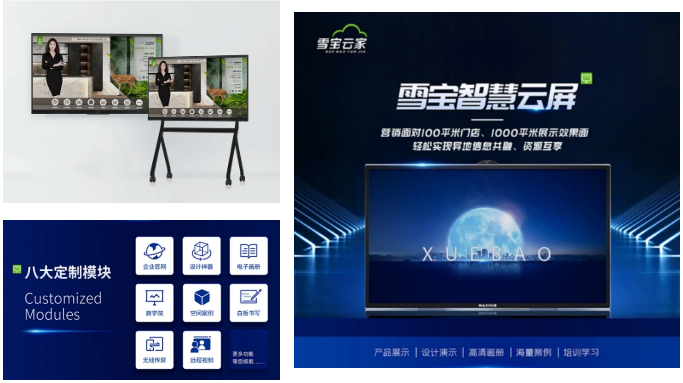 雪寶智慧云屏是一款集企業(yè)展示、設(shè)計下單、內(nèi)訓(xùn)學(xué)習(xí)、遠(yuǎn)程互通等多功能于一體的高清智能多媒體一體機(jī),有助于門店多維智能展示,打通總部與終端門店的點(diǎn)對點(diǎn)溝通,提升門店經(jīng)營效率。