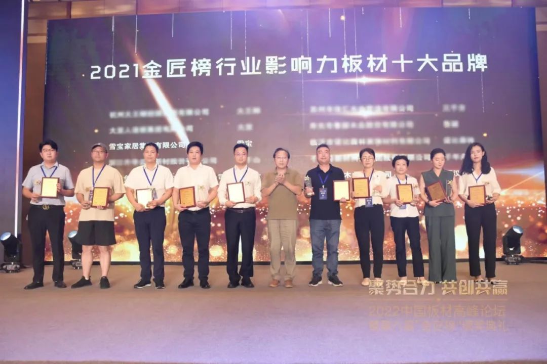 助力企業(yè)成長(zhǎng),打造品牌標(biāo)桿。15日,“聚勢(shì)合力 共創(chuàng)共贏”2022中國(guó)板材行業(yè)高峰論壇暨第八屆金匠榜頒獎(jiǎng)典禮在杭州拉開序幕,雪寶受邀出席,與政府單位、行業(yè)大咖、專家學(xué)者、行業(yè)協(xié)會(huì)以及業(yè)內(nèi)各企業(yè)的精英人士,以及家居等上下游裝飾公司、供應(yīng)商代表齊聚一堂,共謀木業(yè)全新發(fā)展。
