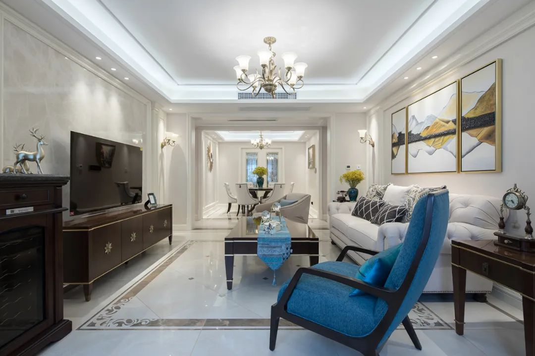 在客廳的設(shè)計上,點(diǎn)線面的結(jié)合流暢而利落,讓整個空間立體飽滿,無論是質(zhì)感十足的硬裝,還是配飾豐富的軟裝,以及點(diǎn)睛之筆的工藝品,剛與柔、深與淺、明與暗的多重對比呈現(xiàn)出交相輝映的層次變化,看似不經(jīng)意,卻又足夠浪漫無比。
