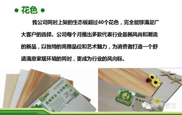 截止2014年底,雪寶板材已推出“孔雀開屏 ”、“千絲萬縷”、“經(jīng)典檀木”等生態(tài)板系列,裝飾面板系列,五金系列,涂料系列,膠粘劑系列等產(chǎn)品。產(chǎn)品的多樣性以及超環(huán)保的性能在業(yè)內(nèi)擁有良好的口碑。“兒童房健康板”的產(chǎn)品理念已深入人心,環(huán)保等級達(dá)到行業(yè)最高的E0級,雪寶板材所代表的就是環(huán)保、生態(tài)、健康。
