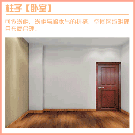 【6、柱子·臥室】可做淺柜,淺柜與梳妝臺的拼搭,空間區(qū)域明確且布局合理。