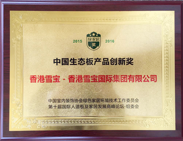 雪寶榮獲“2015—2016年度中國(guó)生態(tài)板產(chǎn)品創(chuàng)新獎(jiǎng)”