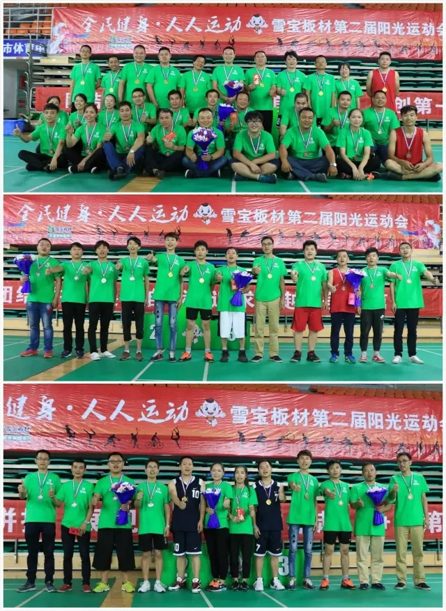 雪寶板材第二屆陽光運(yùn)動會在一片熱情洋溢和滿載而歸中落下帷幕,而雪寶人對健康環(huán)保的無限追求將一直持續(xù),在誠信、精業(yè)、創(chuàng)新、共贏的雪寶價值觀指導(dǎo)下,雪寶人將把軍隊文化、學(xué)習(xí)文化、家庭文化繼續(xù)發(fā)揚(yáng)廣大,共創(chuàng)美好未來!