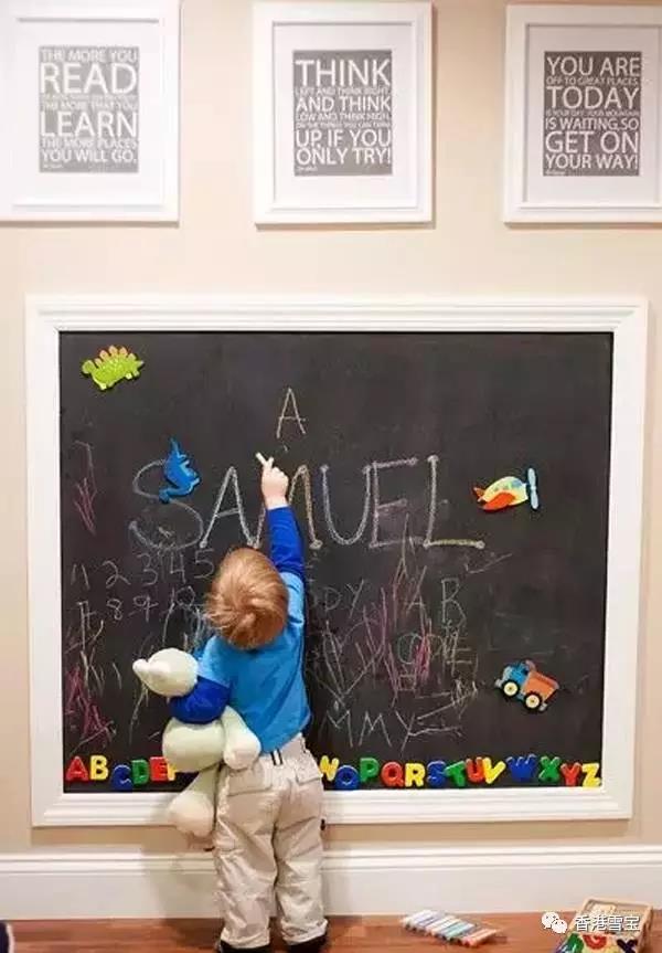 ▲孩童時(shí)期正是想象力最旺盛的時(shí)候,何不給孩子一個(gè)發(fā)揮的空間呢?一面黑板墻正好可以滿足孩子的需求和想象。