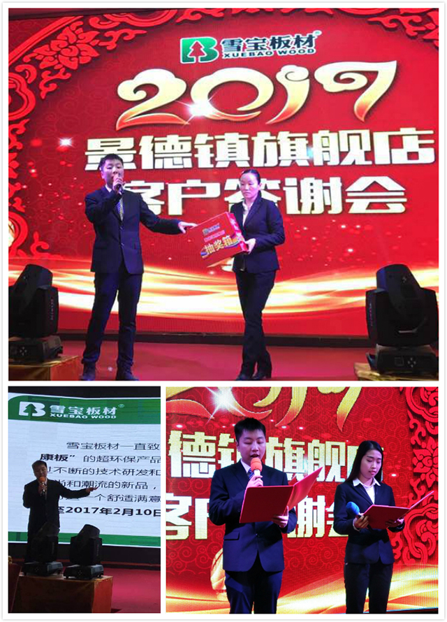 2017年3月7日下午17點(diǎn),雪寶板材江西景德鎮(zhèn)客戶答謝會(huì)在享譽(yù)世界的瓷都順利召開,江西及周邊區(qū)域的近三百位裝飾行業(yè)的業(yè)內(nèi)人士及雪寶板材的合作伙伴齊聚一堂,共商盛舉。