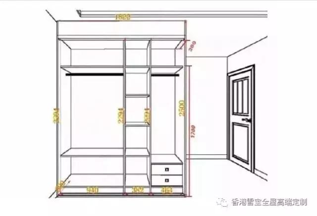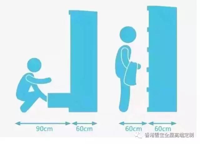 關(guān)于衣柜預(yù)留位置,還需要注意的是,普通衣柜的進(jìn)深一般為60cm,結(jié)合柜門與抽屜打開時(shí)的尺寸考慮,需要給衣柜前方預(yù)留60cm-90cm的空間。